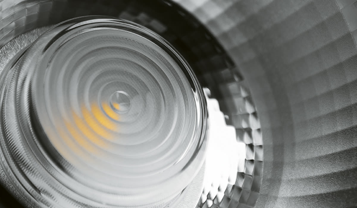 The elevated structure of the luminaire body, combined with the ultra black nano coating, ensures minimised stray light. Rays of light that could create unwanted stray light are absorbed for a fully targeted illumination of the defined areas.