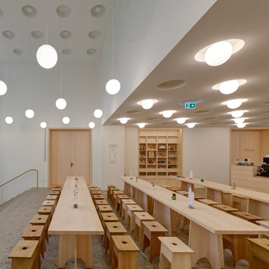 The minimalistic design with its clear-cut lines and no-frill shapes enable these luminaires to be put to many different uses. These simple but functional luminaires perform their duties to excellent effect in all rooms, in corridors and even in staircases.