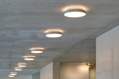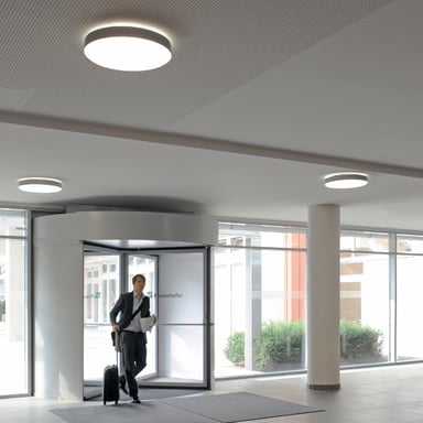 Luminaires in various sizes for interiors with LED module or LED lamps for E 27 screw base. Luminaires that are also perfect for bathroom lighting thanks to their IP 44 protection class in accordance with VDE 0100.
