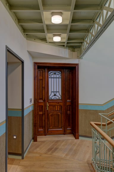 Ceiling luminaires in various sizes that are characterised by a very low height, compact dimensions and wide beam light distribution. Hand-blown, three-ply opal glass with a concave bottom side for soft and pleasantly uniform distribution of the light and high visual comfort. Valuable and aesthetically pleasing luminaires with reliable and efficient lighting technology.