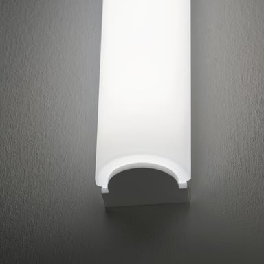 Unshielded wall luminaires with hand-blown satin matt opal glass that distributes the light in a soft and uniform way.