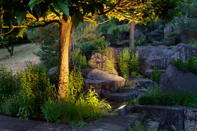 Permanently installed garden floodlights in the immediate vicinity of the building have valuable benefits. They increase safety and at the same time bring out the beauty of your garden after dark.