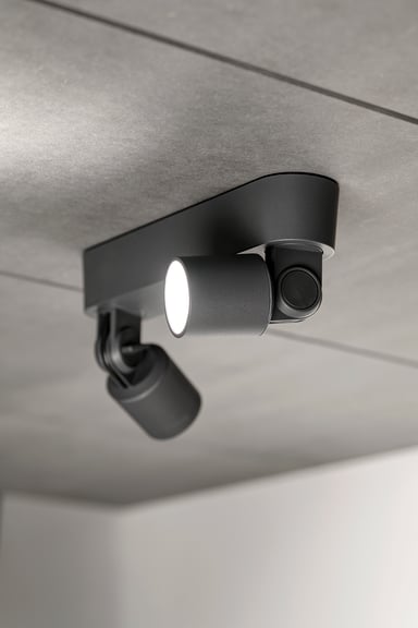 They are floodlights with adjustable positioning for situations where illumination in different directions from one installation location is desired. The permanent cross beam with two floodlights is suitable for ceiling or wall mounting.