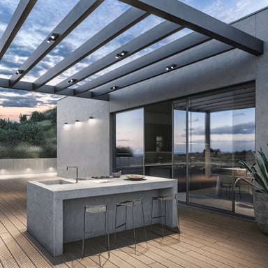 Two small floodlights on a single cross beam for a wide range of applications where floodlighting and beautiful lighting effects outside the house and in the private garden are required.