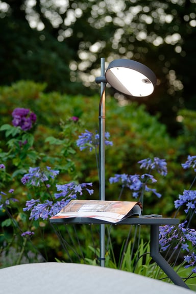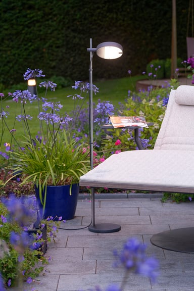 This versatile luminaire is characterised especially by the option of adjusting the luminaire head. It can be turned by 30° in both directions, and the height is also infinitely adjustable. These portable luminaires can either be placed in lawns, flowerbeds or plants with an earth spike, or in the version with a stand they can be positioned freely on patios and balconies. If necessary, the luminaires can be moved quickly to another location.